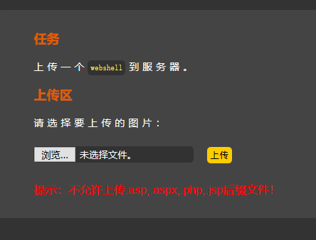 发现是黑名单判断,服务器端禁止上传’.asp’,’.aspx’,’.php’,’.jsp’后缀的脚本文件 其采用的黑名单,php的话有时候php3、php4、php5、phtml、pht这些后缀也是可以被解析的(配置的原因),其他语言也有类似的情况,需要尝试: