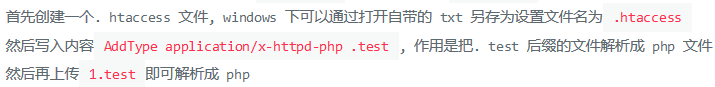 意思是将文件夹下的one.jpg文件按照php格式去解析,然后再上传一个文件名为one.jpg内容为木马的文件,然后访问,可以执行代码(其中.jpg也可换成test等其他,但其他也需改变)