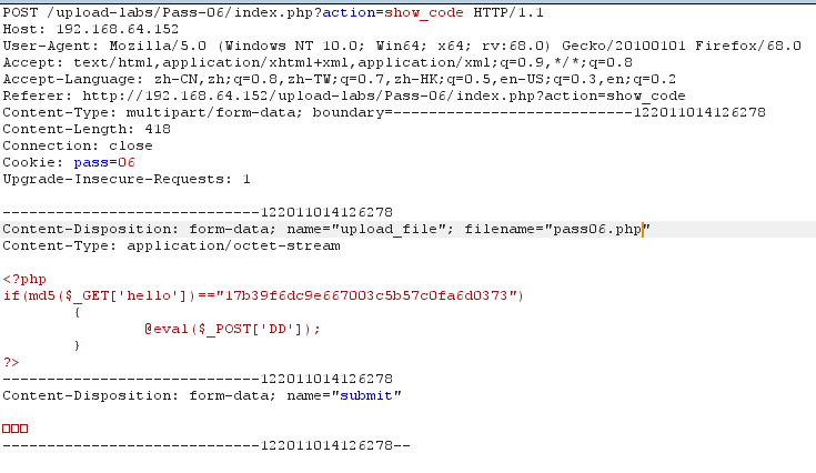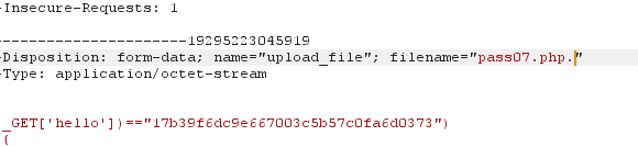 该题也是00截断,只不过由于文件路径这个参数是通过post请求发送的,需要抓包后再hex中修改,因为post不会像get对%00进行自动解码