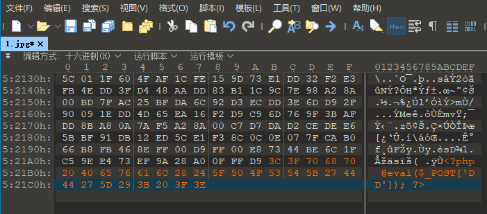利用16进制编辑器在图片的编辑栏末尾加上木马