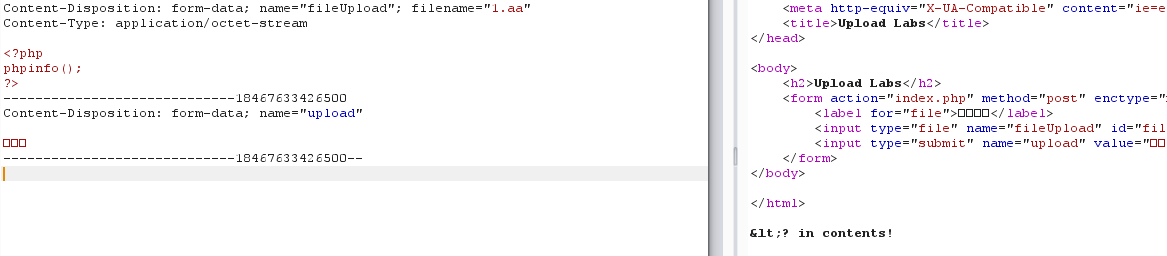 发现报错信息里提到的是文件内容的<?进行了过滤,但也说明了他是用黑名单过滤文件后缀的