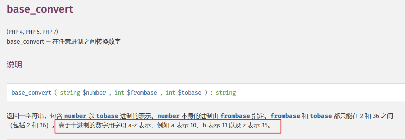 base_convert函数可以在任意进制之间转换数字,可以返回任意字母,需要注意它无法返回_ *等特殊字符